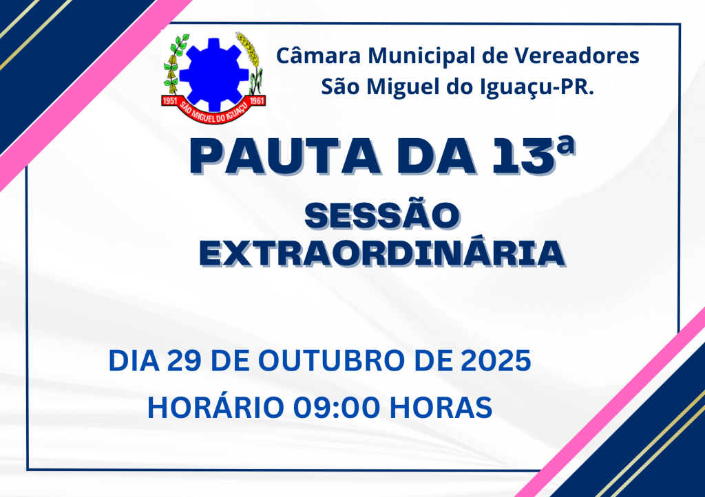 PAUTA DA 13 SESSÃO EXTRAORDINÁRIA